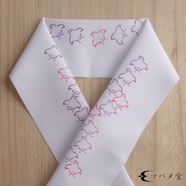 千鳥が飛び回る柄です。ピンクと紫の二色で可愛らしい雰囲気の半襟です。